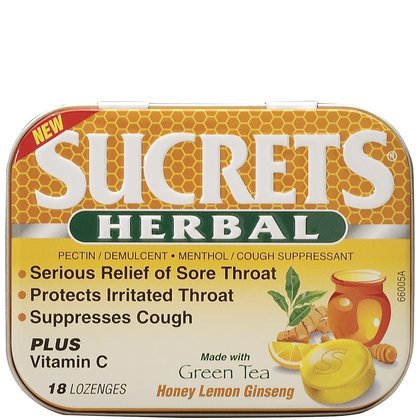 - Sucrets Sore Throat Herbal Green Tea Honey Lemon Ginseng Lozenges for protection of irritated areas in sore mouth and throat.