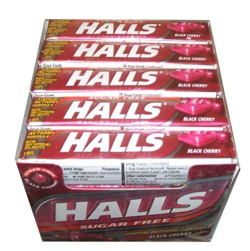 - Each box has Twenty 9-Drop Sticks of delicious Halls Black Cherry Flavored Cough Drops.